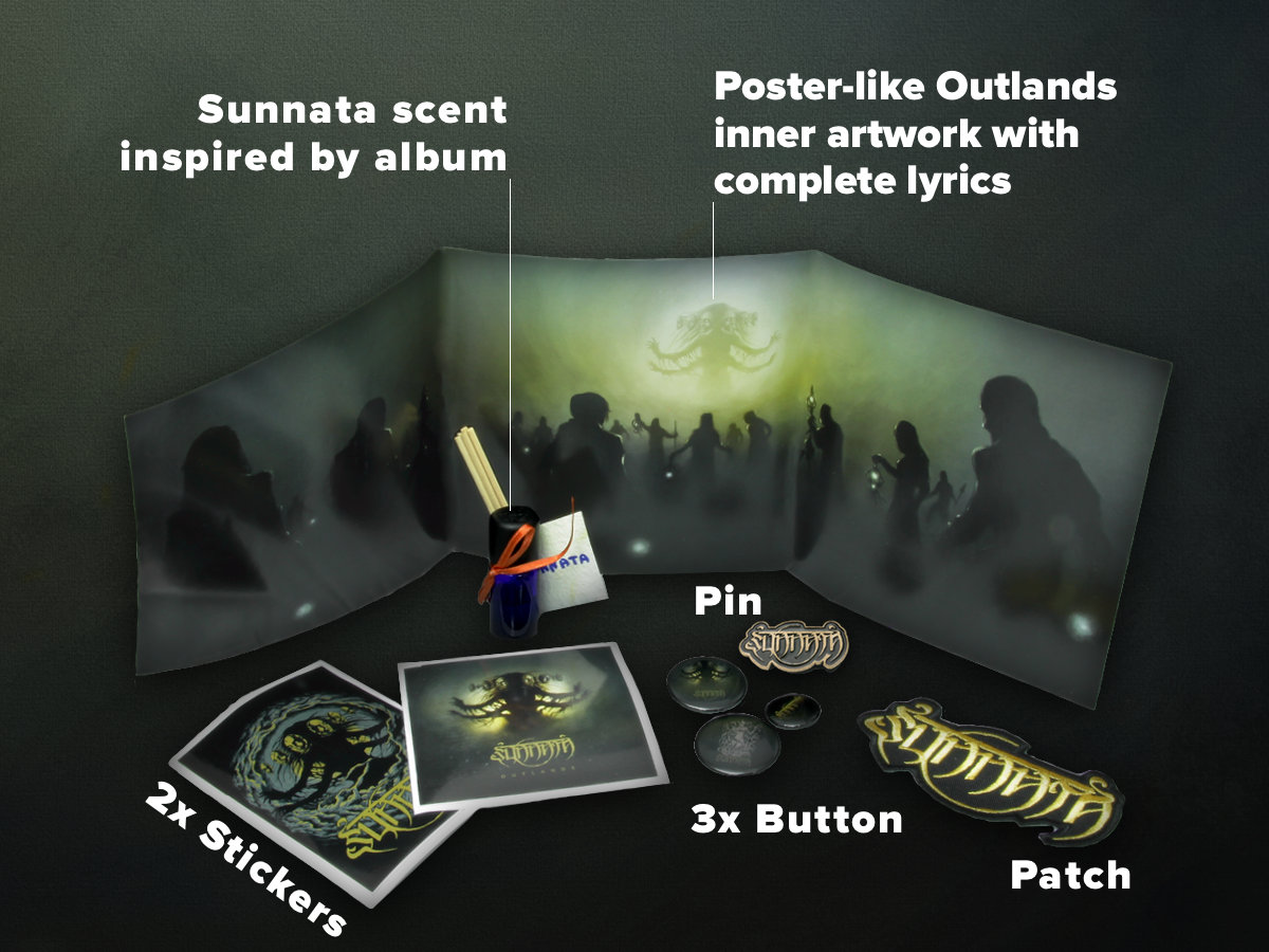 1x Poster-like sheet of interior artwork by Maciej Kamuda with all the lyrics we wrote for Outlands.